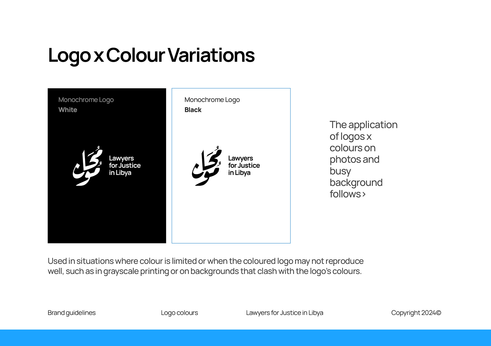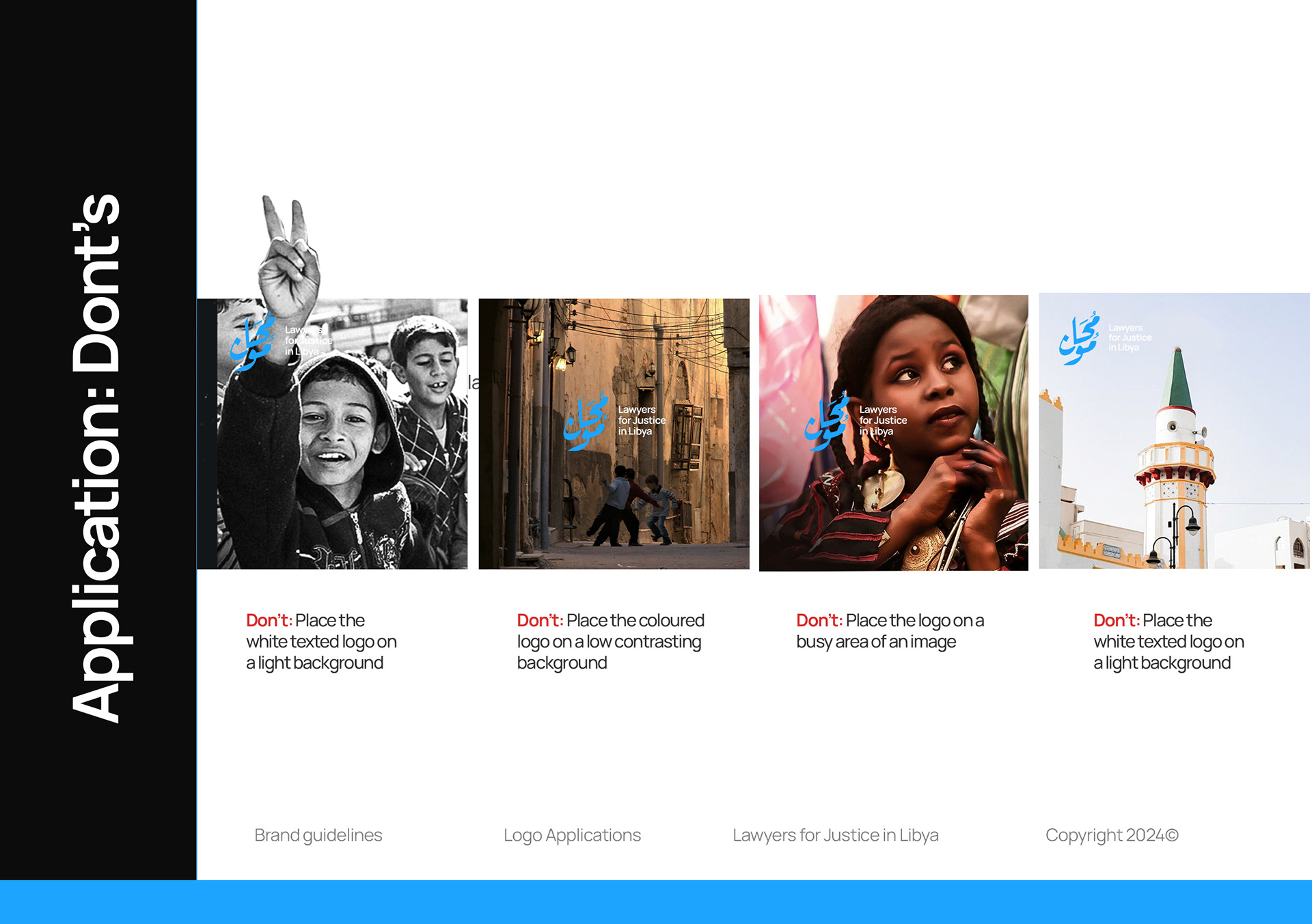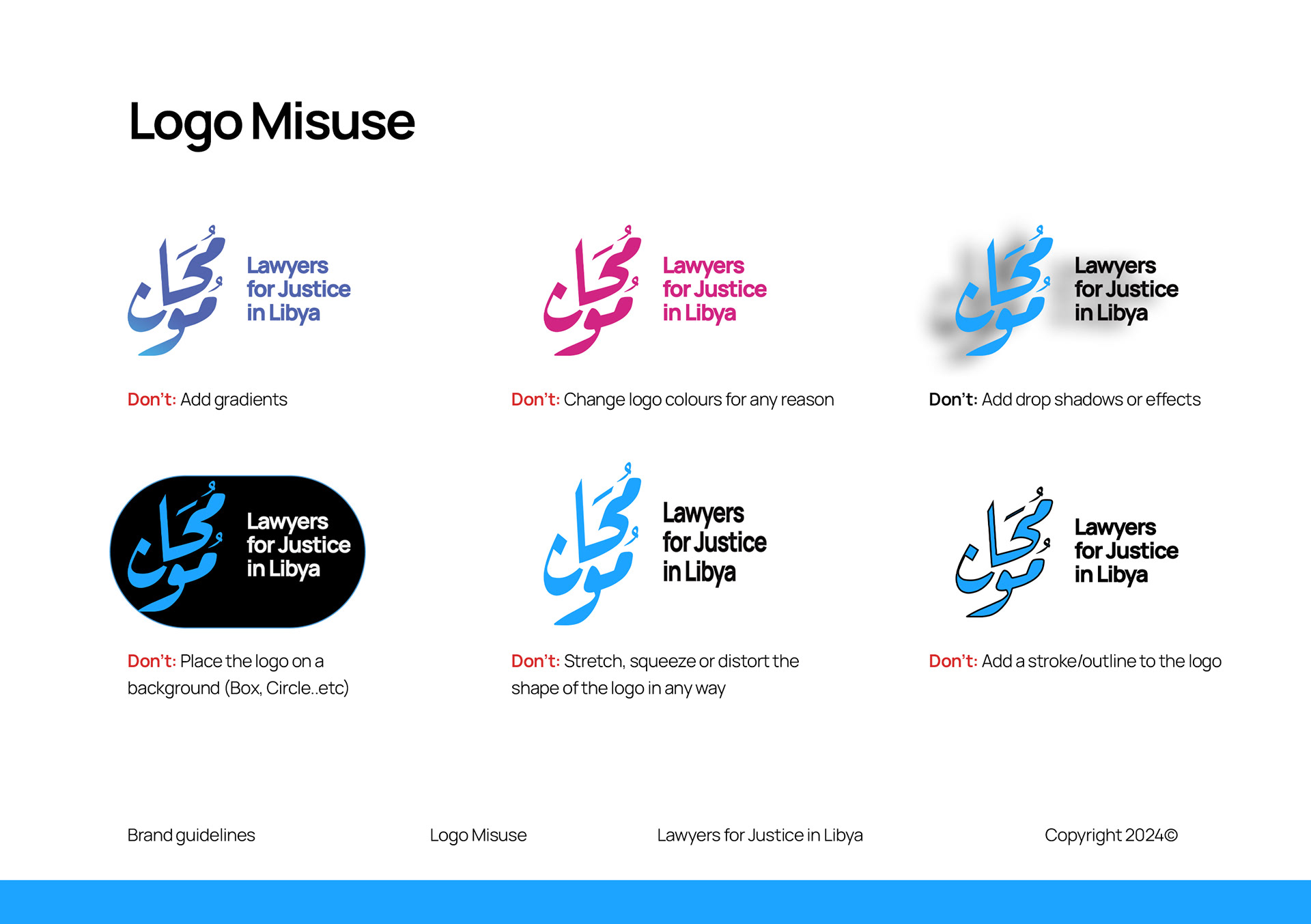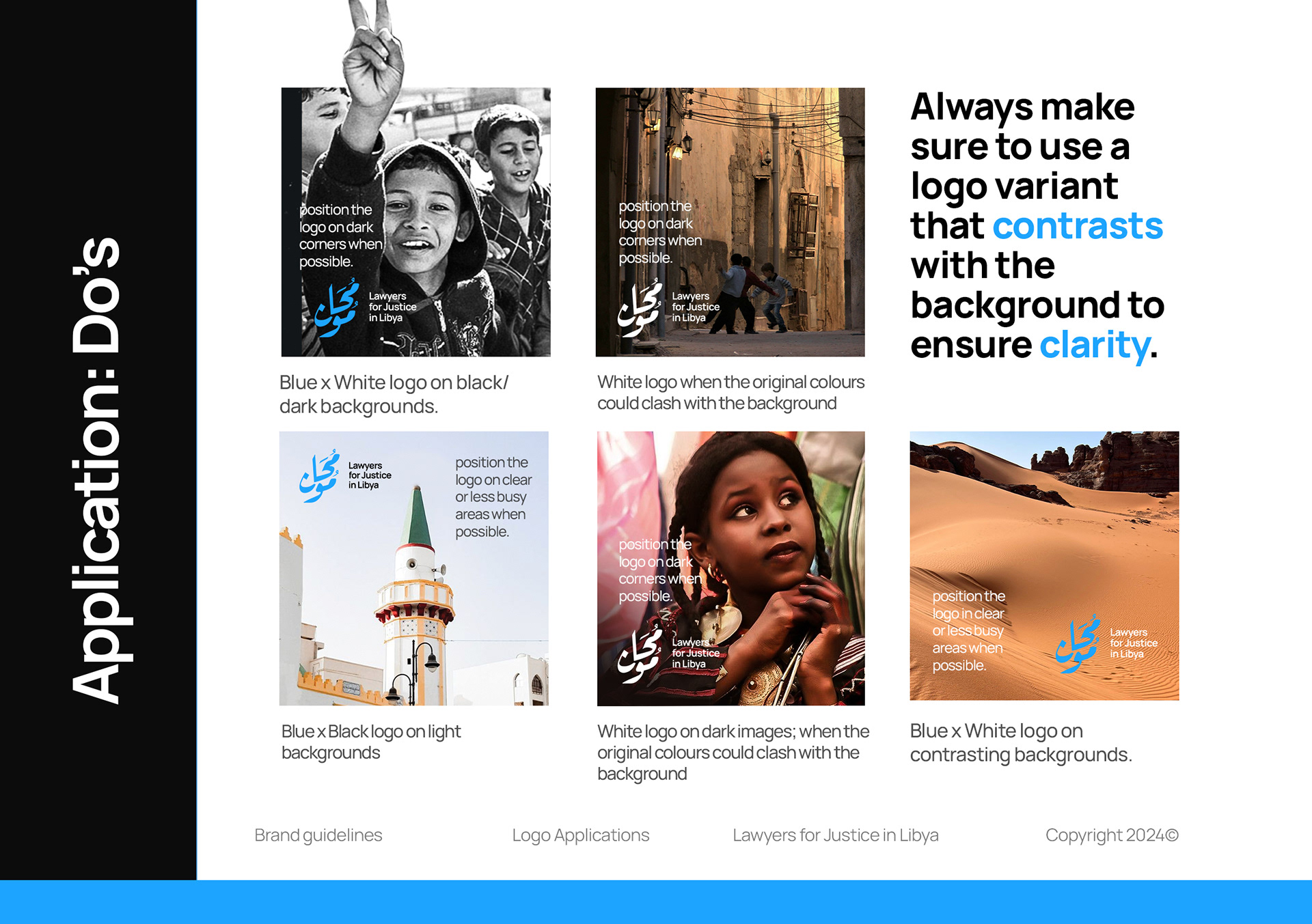A few samples of the logo guidelines shared with the organization, external consultants, and partners to ensure consistent and proper implementation.
